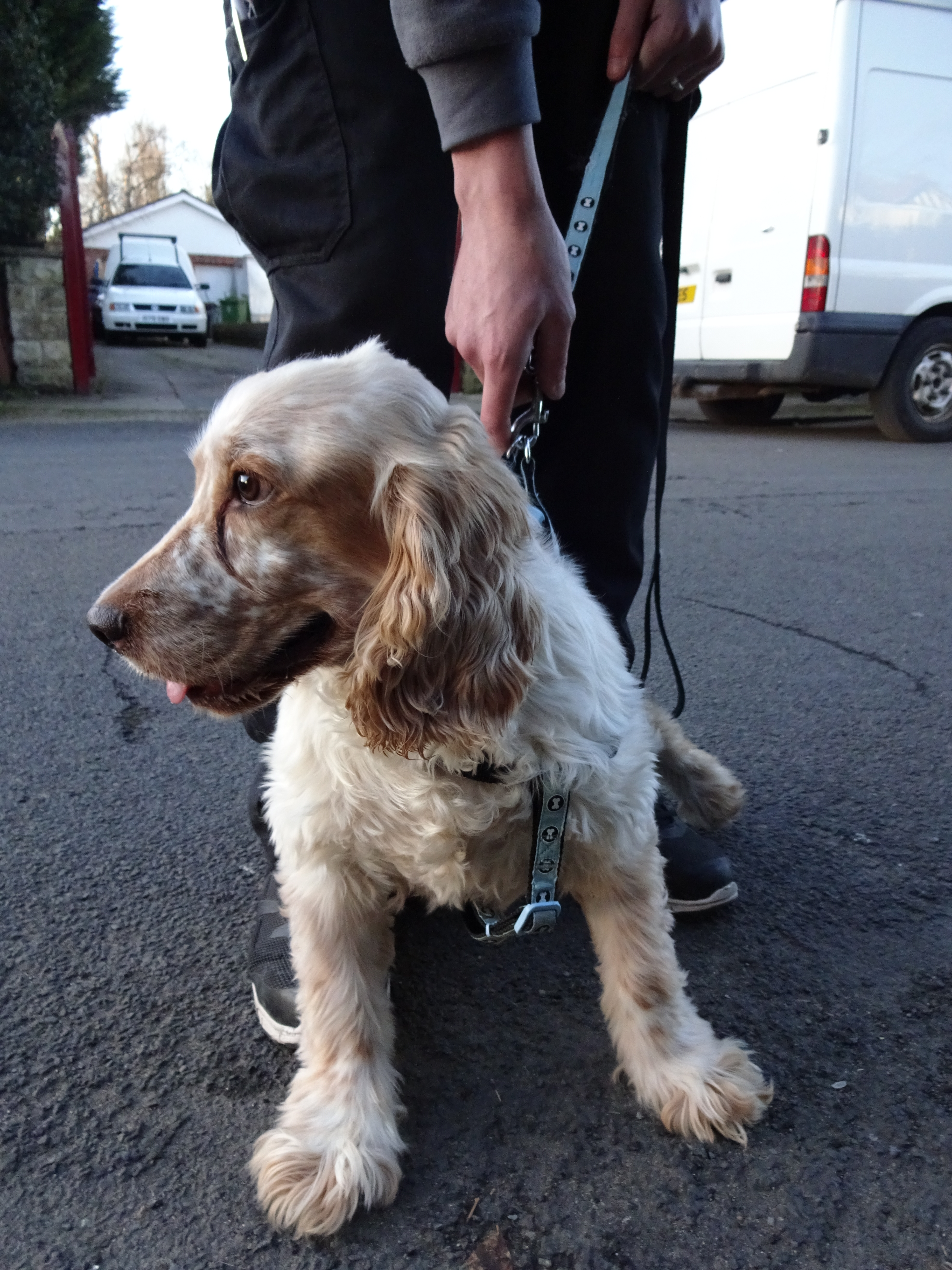 I just turned onto the street where I park to pick up my little boy from nursery when I spotted a very nice Cocker Spaniel so I parked up and went over to say hello! I met very cute Harvey, he was little nervous though, he’s always a little shy with strangers! I did manage to give him a little stoke though and I’m not sure you can tell from the picture but he a had a very cute little smile on his face!