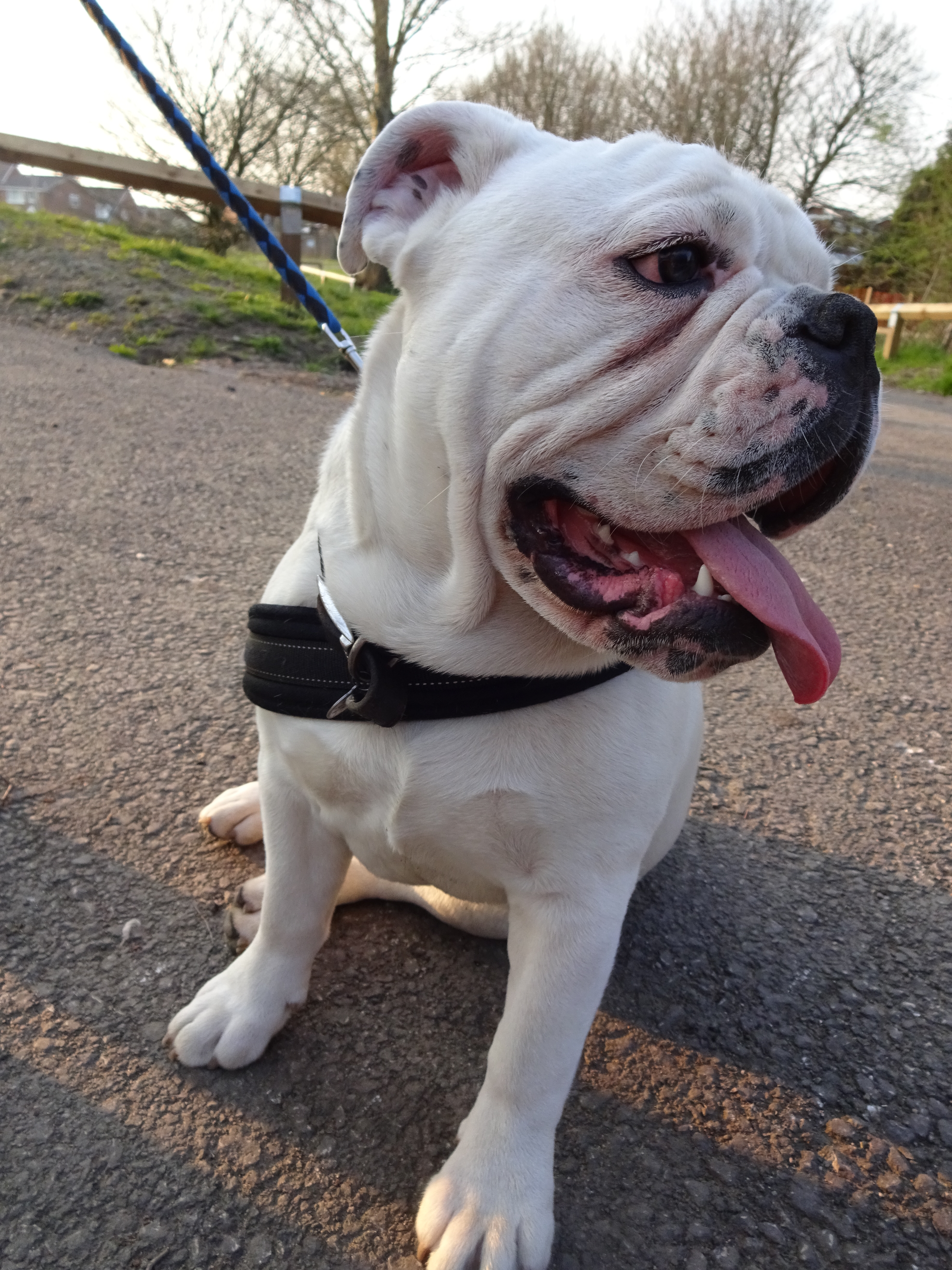Just as I was taking pictures of lovely Glen yesterday I spotted a very handsome Old English Bulldog; sooo gorgeous! I asked his human mummy if she would be able to meet up with me today so that I could take his picture and she said yes, very happy! It was pretty nice knowing that I had a dog lined up today so I didn’t have to go searching at dinnertime, I did happen to walk past about 5 dogs though!