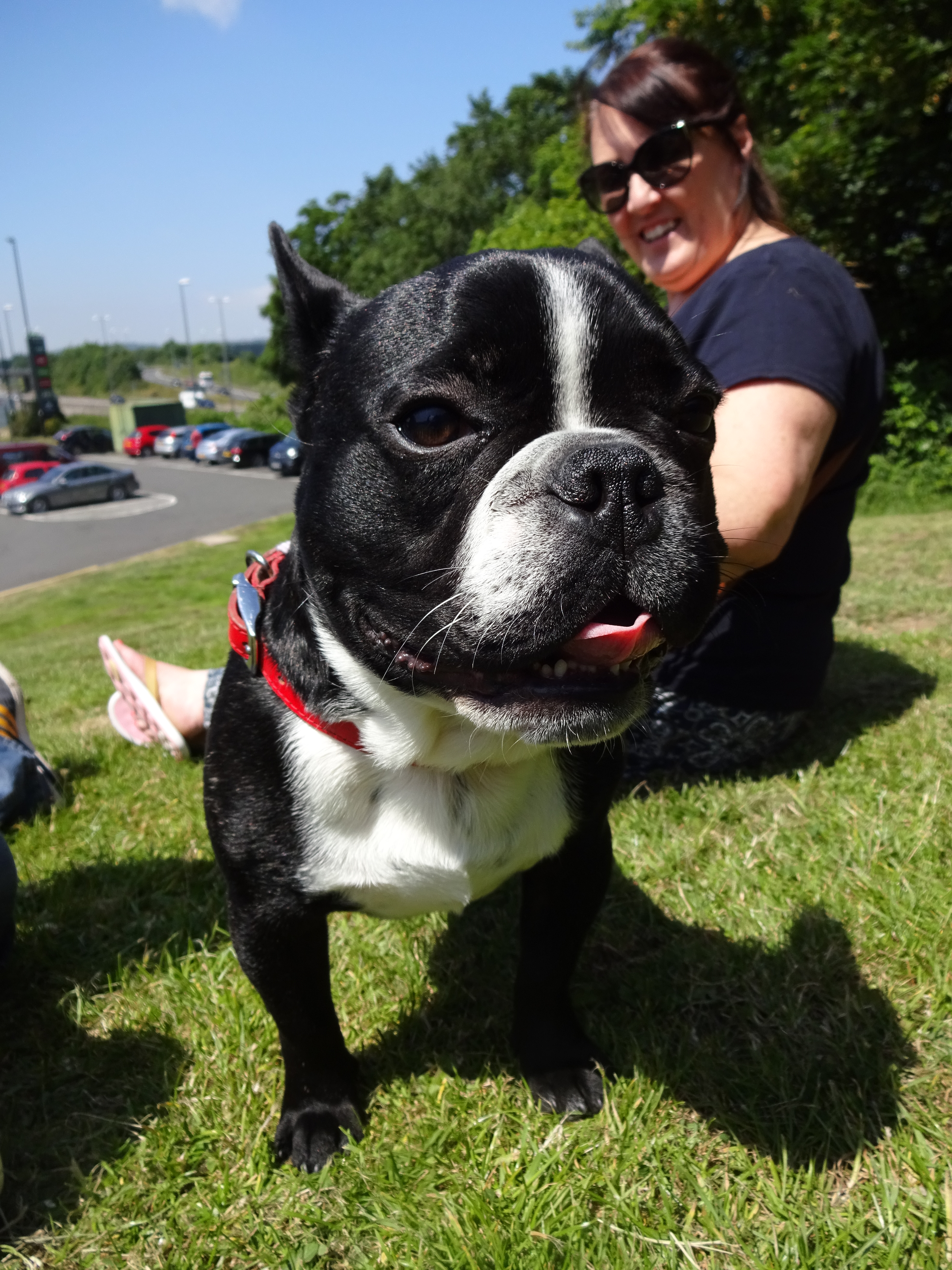 We travelled back home from Weymouth today; we were stuck in traffic for most of the way, it took an age to get home! Fortunately I knew I’d have no trouble finding a dog today as there’s always loads at service stations; someone could do a blog on service station dogs! As soon as we drove into the car park I spotted a French Bulldog, I was very pleased, I think they’re great! Finn is a very handsome and friendly boy, I got to give him lots of strokes! Finn’s humans have previously had Boxer dogs but wanted to go for something smaller and so the chose a French Bulldog! They said when they went to pick him up he looked a bit funny and had a wonky eye! He just sat there and looked at them and they fell in love. He definitely doesn’t have a wonky eye now!