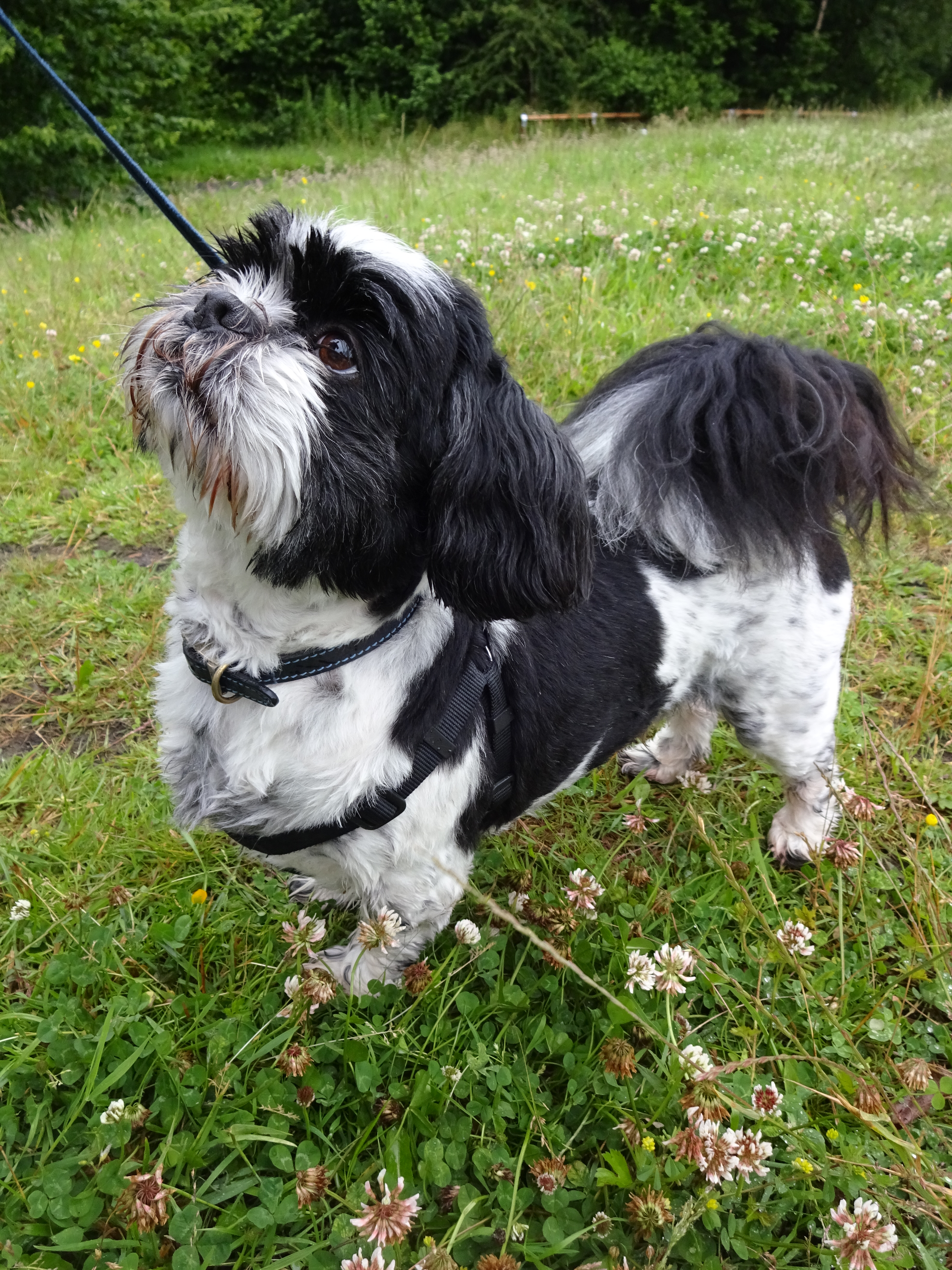 I didn’t manage to get out at lunchtime today so I had to wait until I got back to Bolton to search for a dog. I went round to my parents house to pick up Ethan and went for a little walk down the street. I spotted a dog straight away so went over to say hello! Buddy is a very cute and friendly Shih Tzu. He’s named after Buddy Holly and he also lives with another Shih Tzu called Peggy Sue! Peggy wasn’t put on the walk with them as she doesn’t like to go out in the rain! Buddy’s humans have always had Shih Tzu’s, they previously had one called Gizmo and one called Harvey.