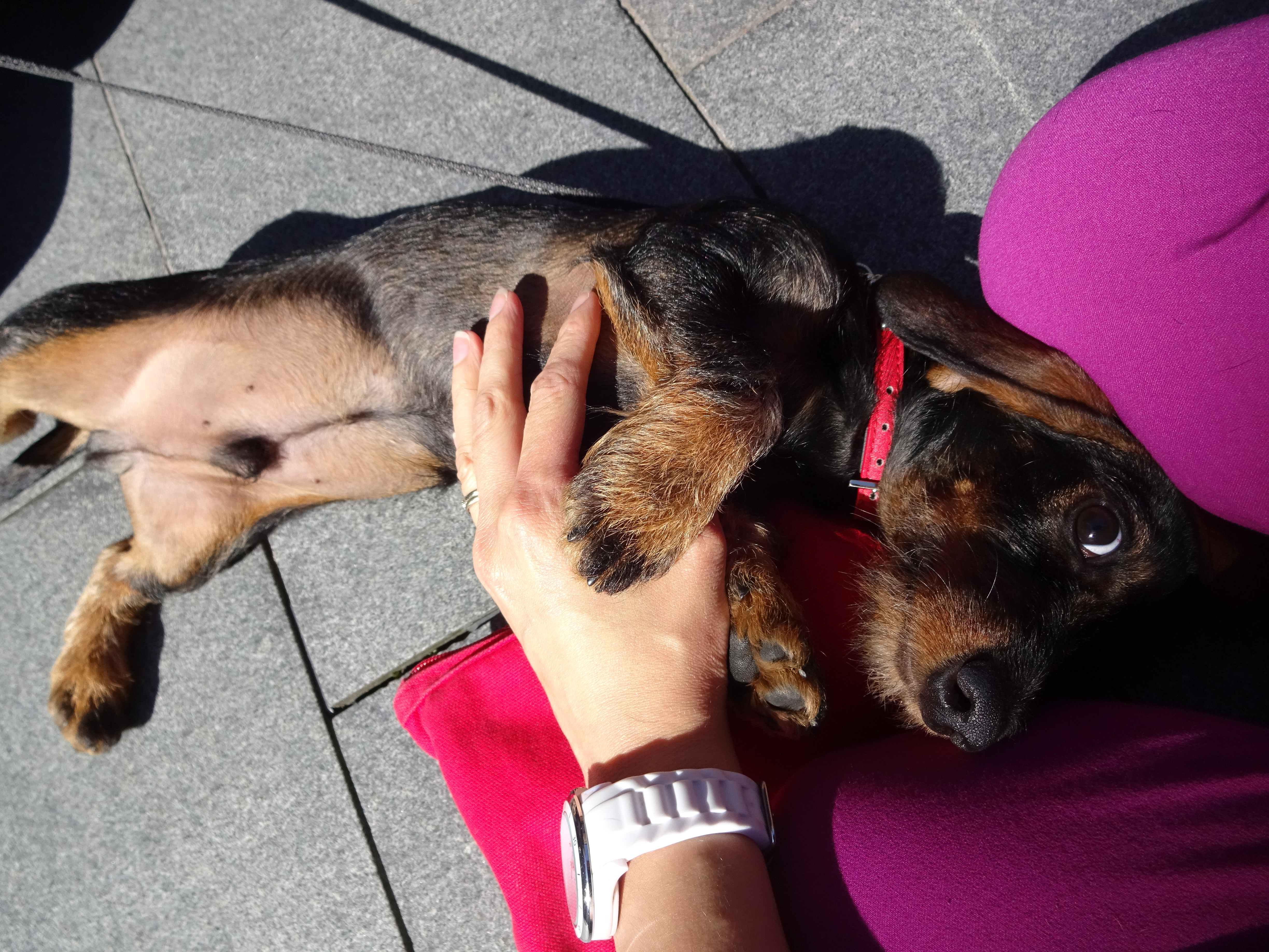 I was in work today and I got a call over the radio saying there was a very cute dog outside that I had to go and see! I went down to the entrance as quick as I could so I could meet Bronson a gorgeous puppy Dachshund. Two Dachshunds in one week, what a lucky girl! Bronson is mega excited all of the time! He doesn’t keep still because he’s really happy about all of the people that he can meet! I got to have a little cuddle with him almost straight away and got lots of kisses, such a friendly boy.