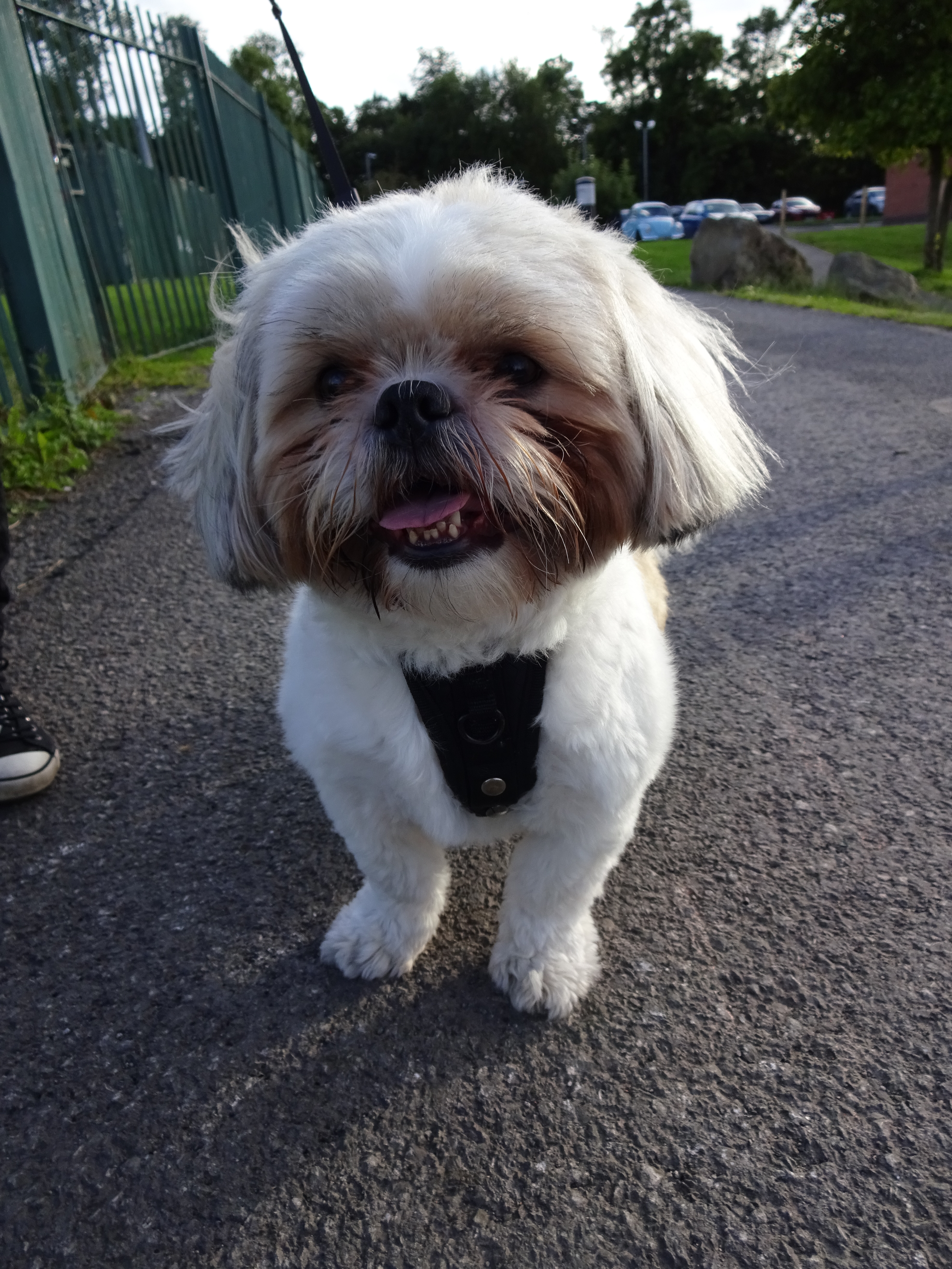 I had to wait until my husband got back from work today before I go could in search for a dog. I went to the usual park, it seemed pretty quiet at first but then I spotted gorgeous Chewy who came bounding over to say hello. We then spotted a very cute Shih Tzu, Chewy went and made friends with him and then I went over to say hello! Oddy is very sweet, a real friendly boy he loves having cuddles and attention! Oddy is the biggest Shih Tzu I’ve ever seen!