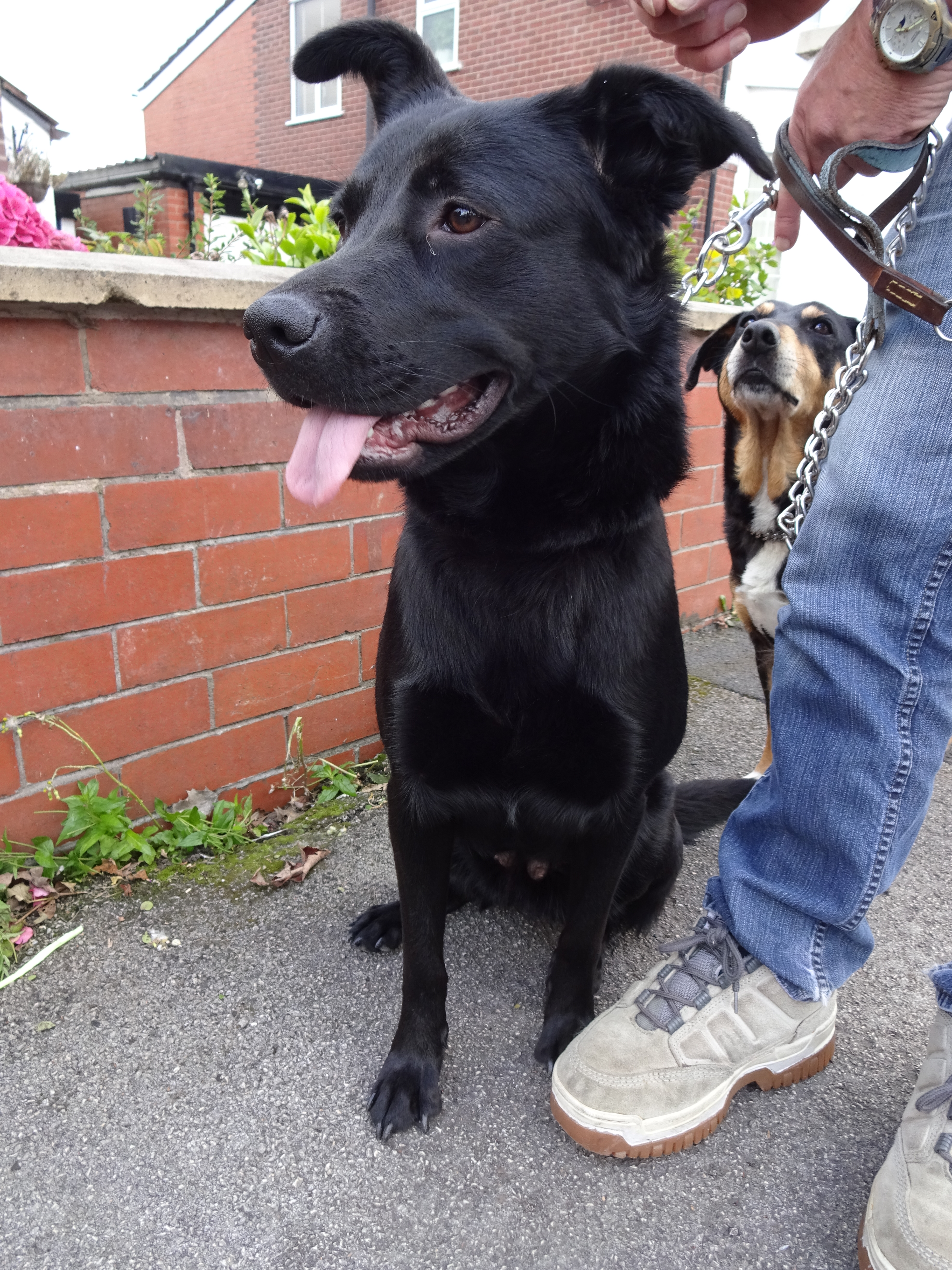 I gave my friend a lift home from the train station today and just I was parked up I spotted a man walking two lovely dogs. When I started talking to him I realised that I recognised him and one of the dogs; it was beautiful Daisy from Day 88. They lost another dog last year and they waited a few months until they got another one and beautiful Ebony came to live with them. Ebony is such an excited happy girl, she’s got a lovely big smile! Her and Daisy get on well despite Ebony always stealing her ball!