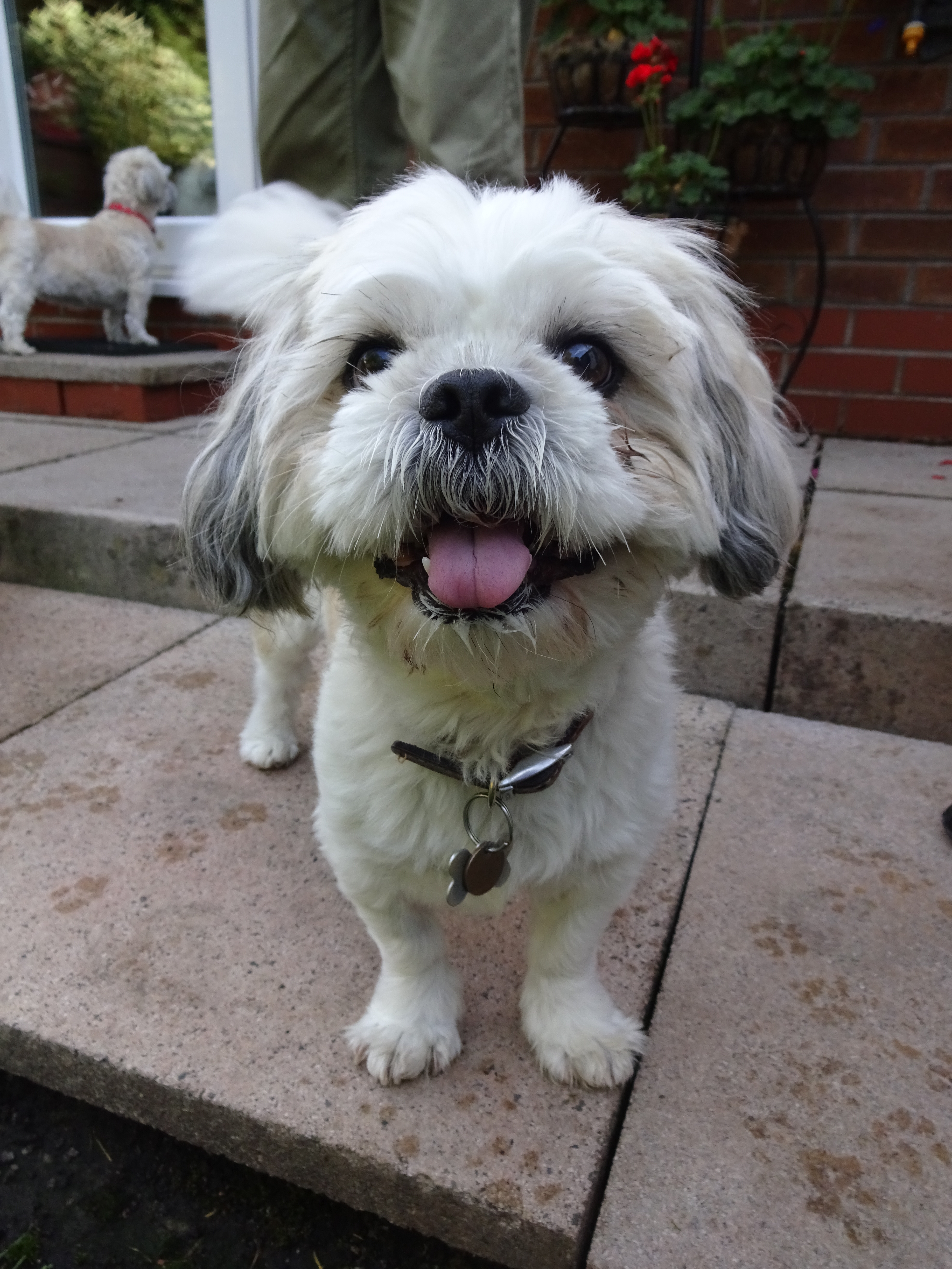 I’m got the week off work this week; I’m very pleased! Today I decided to go and visit my mum and dad’s friends Alan and Pauline to see their lovely dogs and make them my dogs of the day! Max and Molly are a lovely pair, so cute! They were both very excited when we arrived, it took them quite a while to calm down! Molly has a had a litter of puppies and one of her puppies Joey was also there visiting today. Ethan had a great time playing with the dogs and he was laughing his head off when Max stared licking his belly! Max is a very affectionate boy, he’s a real softy!