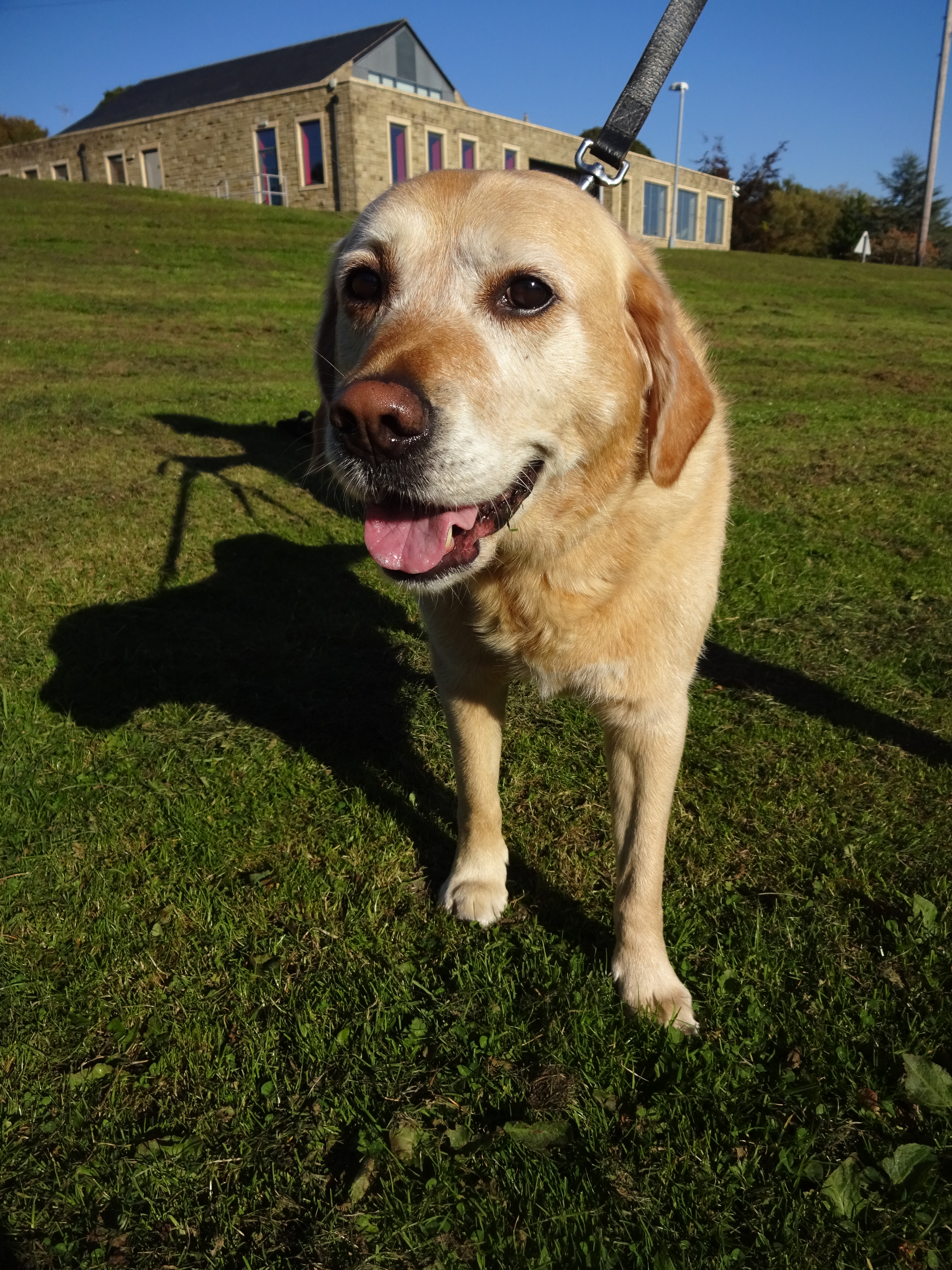 I’ve had a real treat today, a trip to the spa at the Last Drop Village with my mum! I’m extremely relaxed now! On the way back to the car I spotted a man walking two very lovely dogs so I went to meet them. By the time I’d reached them Bertie the Border Collie had already ran off so I decided to make Amber a beautiful Golden Labrador/ Retriever cross my dog of the day. Amber is a lovely girl, she very friendly and was also very relaxed! When Amber was a puppy she was in the Guide Dog training programme but unfortunately she didn’t make it because she didn’t stop ‘spending’ on the lead! Amber gets on well with her dog housemate Bertie although they are quite different temperament; Bertie doesn’t stop!