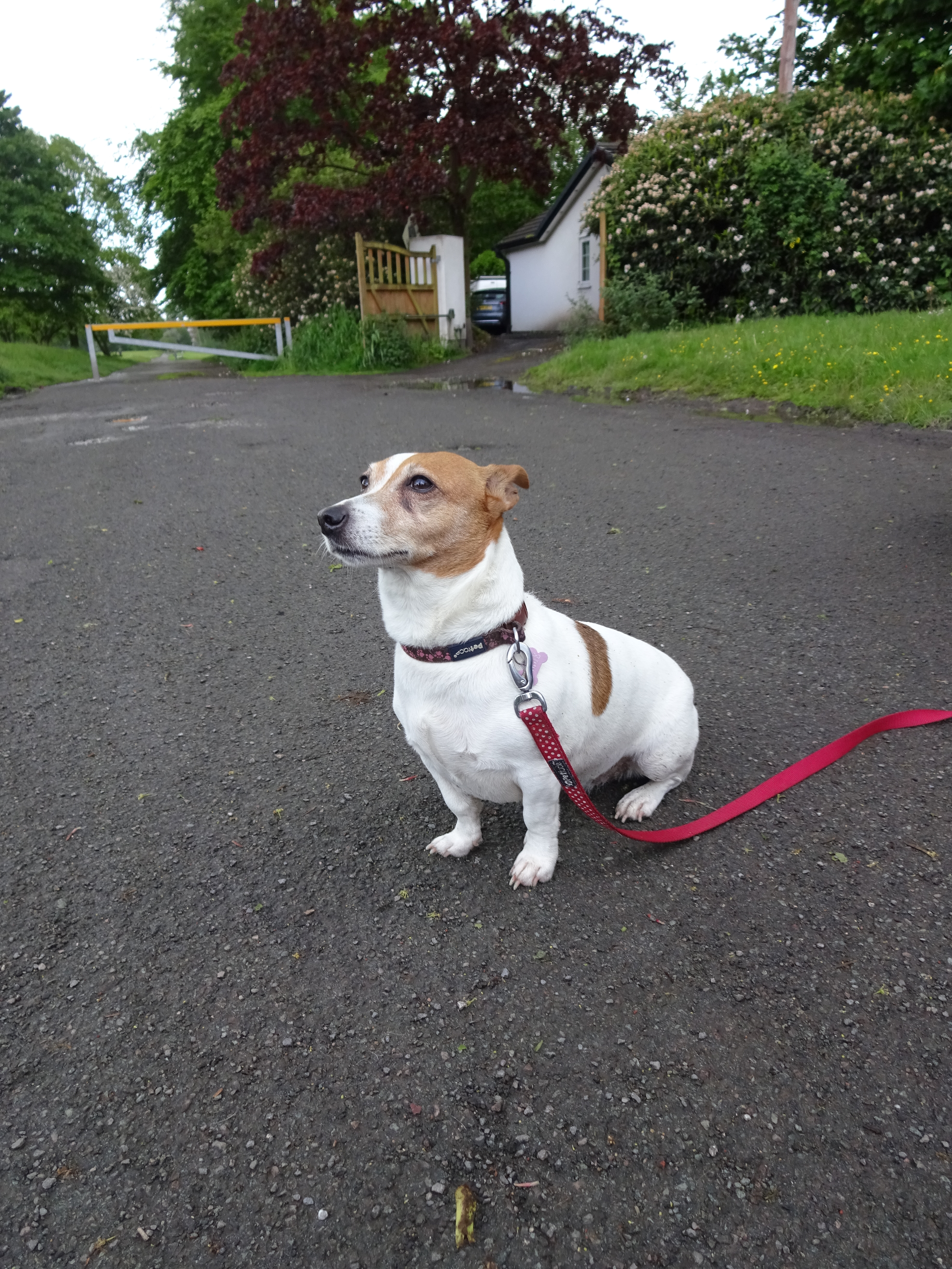 I went out at lunchtime today but there were no dogs! On the way home I popped to the park but there was no room in the car park so I drove to another small park; there were no dogs there! I parked up at home and then went out on foot! I really wanted to find a dog quickly as it looked like it was going to pour down! I was in luck, as soon as I walked into the park I spotted a lady running with her very cute Jack Russell. Fortunately she didn’t mind stopping for me to take lovely Jessie’s picture! Jessie is a lovely friendly girl, it took a while to get a picture because every time I stood back from her she came running up again to get a stroke! She almost instantly lay on her back so I could tickle her tum! Jessie enjoys going running with her human mummy, she’ll run up to 5km and she’s climbed almost every mountain I the Lakes!