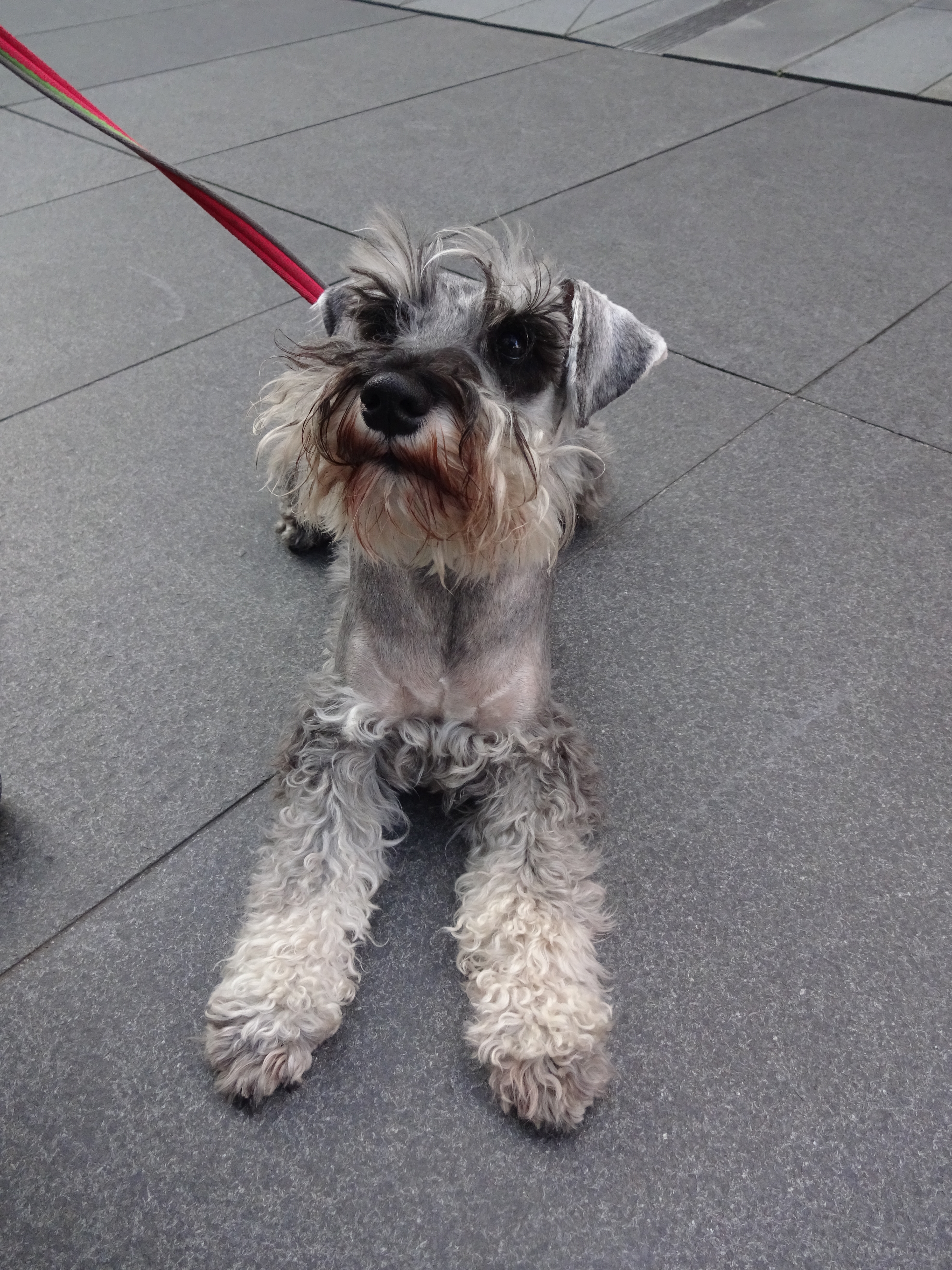 The weather has been awful today! I finally spotted a break in the rain I went for a little walk down the street with my dad and niece. It was quiet about but eventually we spotted a really cute little Schnauzer! Lexi is very sweet but she’s a little shy; I got to give her a good stroke though! Lexi lives with 3 cats, she likes to play with them but they’re not too keen!